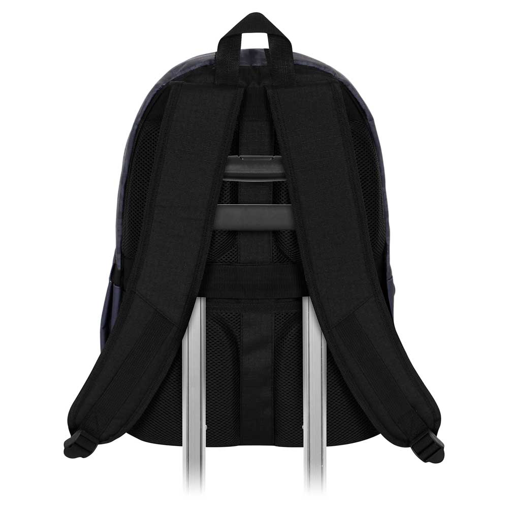 Espalda acolchada con canales de ventilación, cinta para el trolley y bolsillo de seguridad oculto.