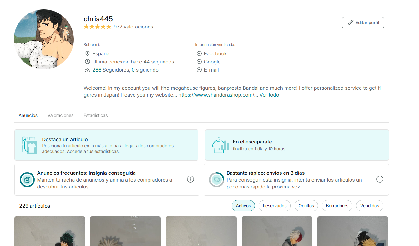 Actualmente estamos empezando en Shandora Shop, pero llevamos muchos años vendiendo y ofreciendo productos en Vinted, Wallapop, Ebay...